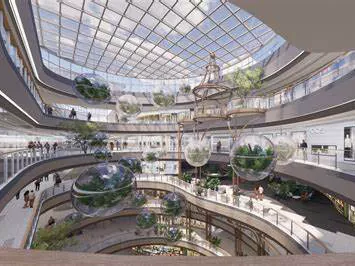Японы Fukaya Garda Guardets Centoad: Хэсэгчилсэн хоёр давхар бүтцийг хэсэгчилсэн зураг, барилгын гадна талын зураг нь худалдааны төвтэй төстэй дүр төрхийг танилцуулж байна. Түүний хоол хүнсний шүүх нь хоёрдугаар давхарт байрладаг бөгөөд худалдааны төв ба алслагдсан уулсын хосыг санал болгож байна.