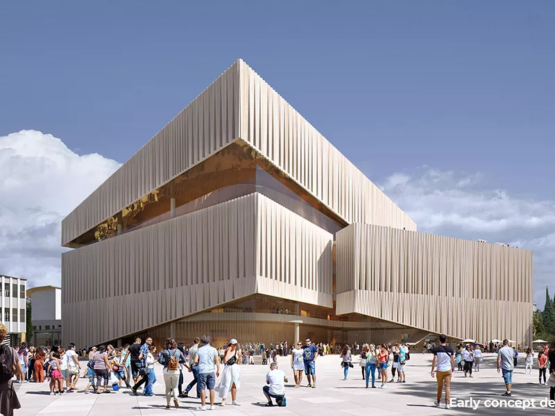 EIHE ган бүтэцийн ган бүтэц нь түншлэлийн театрын барилга байгууламжийн ирээдүйг байгууллагын ирээдүйг бүтээгдэж байна. ЭНД ДАРЖ, ЗӨВЛӨГӨӨ ЗӨВЛӨГӨӨ, Үр ашигтай, үр ашигтай, үр дүнтэй, Акустик чанар, эрчим хүчний давуу, тогтвортой байдал, бусад материалаар дамжуулан тогтвортой байдал, тогтвортой байдал, тогтвортой байдал.